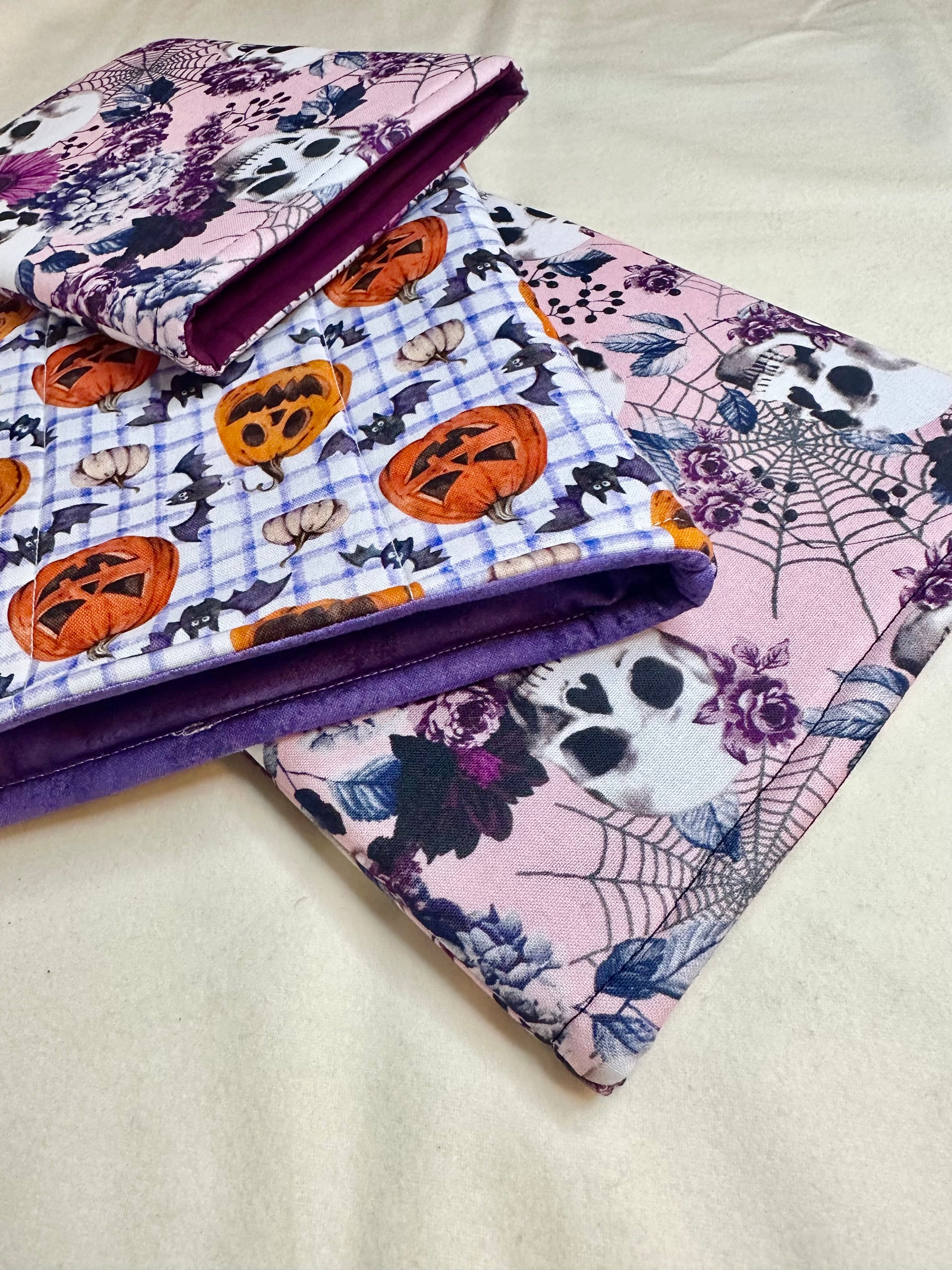 Floral Skull Book Sleeve, Purple Gingham E-Reader Holder, Pumpkin Notebook Protector, Jack o Lantern